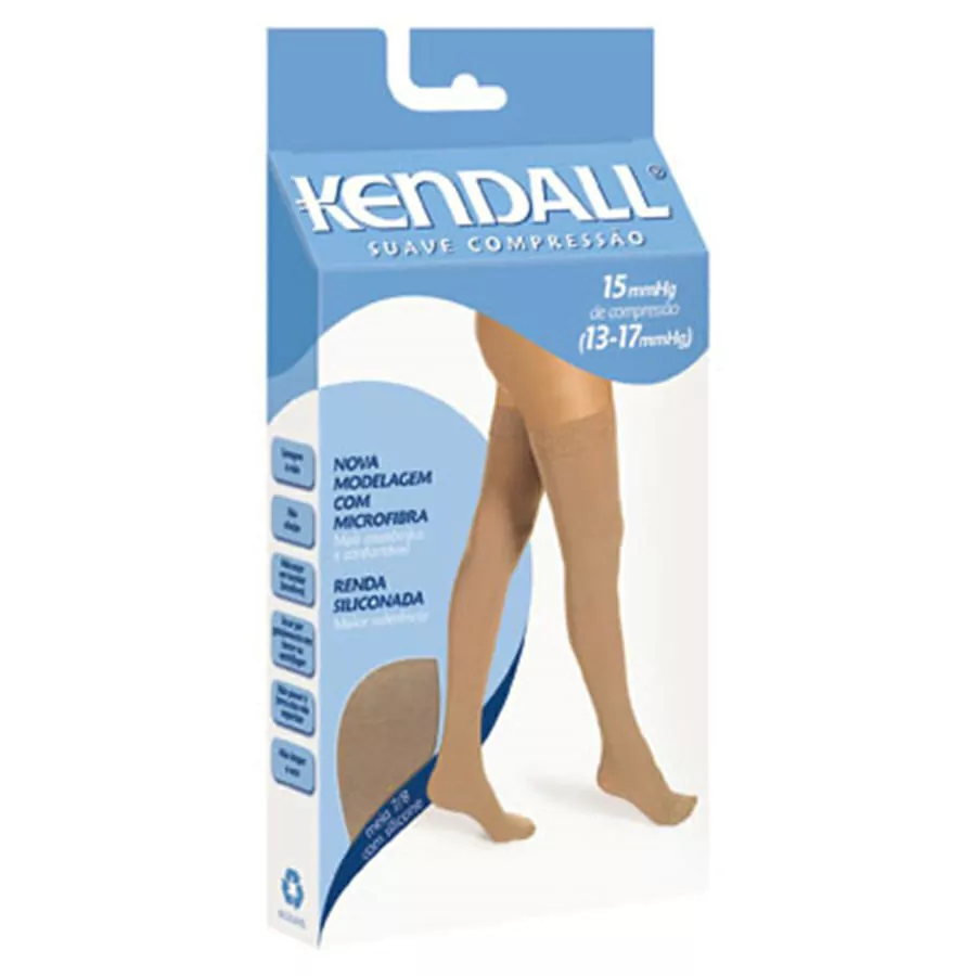 Meia Medicinal 7/8 Ref. 2612 com ponteira e Renda Siliconada 15mmHg-Prevenção Suave Compressão-Graduada da Kendall: (Feminina). 01 par. Para quem sente dores leves no final do dia ou busca prevenção de doenças venosas nas pernas. A pressão exercida no tornozelo, princincipal ponto de compressão (nossa 2ª bomba venosa), pode variar de 13-17mmHg. Auxiliam na prevenção e tratamento de varizes e proporcionam conforto às pernas, reduzindo dores e cansaço. Indispensável para grávidas e mulheres que permanecem longo período em pé ou sentado e para reduzir os efeitos danosos do sedentarismo. Nas viajens de longa distância previne a "síndrome da classe econômica". Ponteira fechada.
