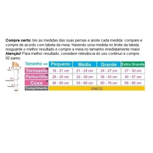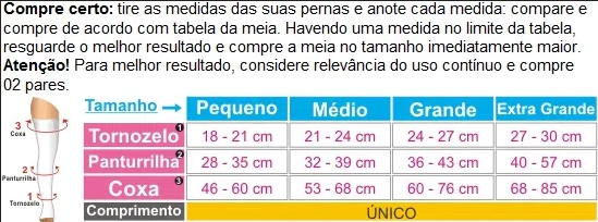 Importante: para comprar sua meia tire as medidas de acordo com a tabela.