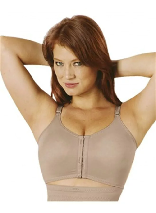 Sutiã pós-cirurgias e para amamentação. Possui alças reguláveis. Com abertura frontal total com colchetes. Cor chocolate R3030AR Yoga.
